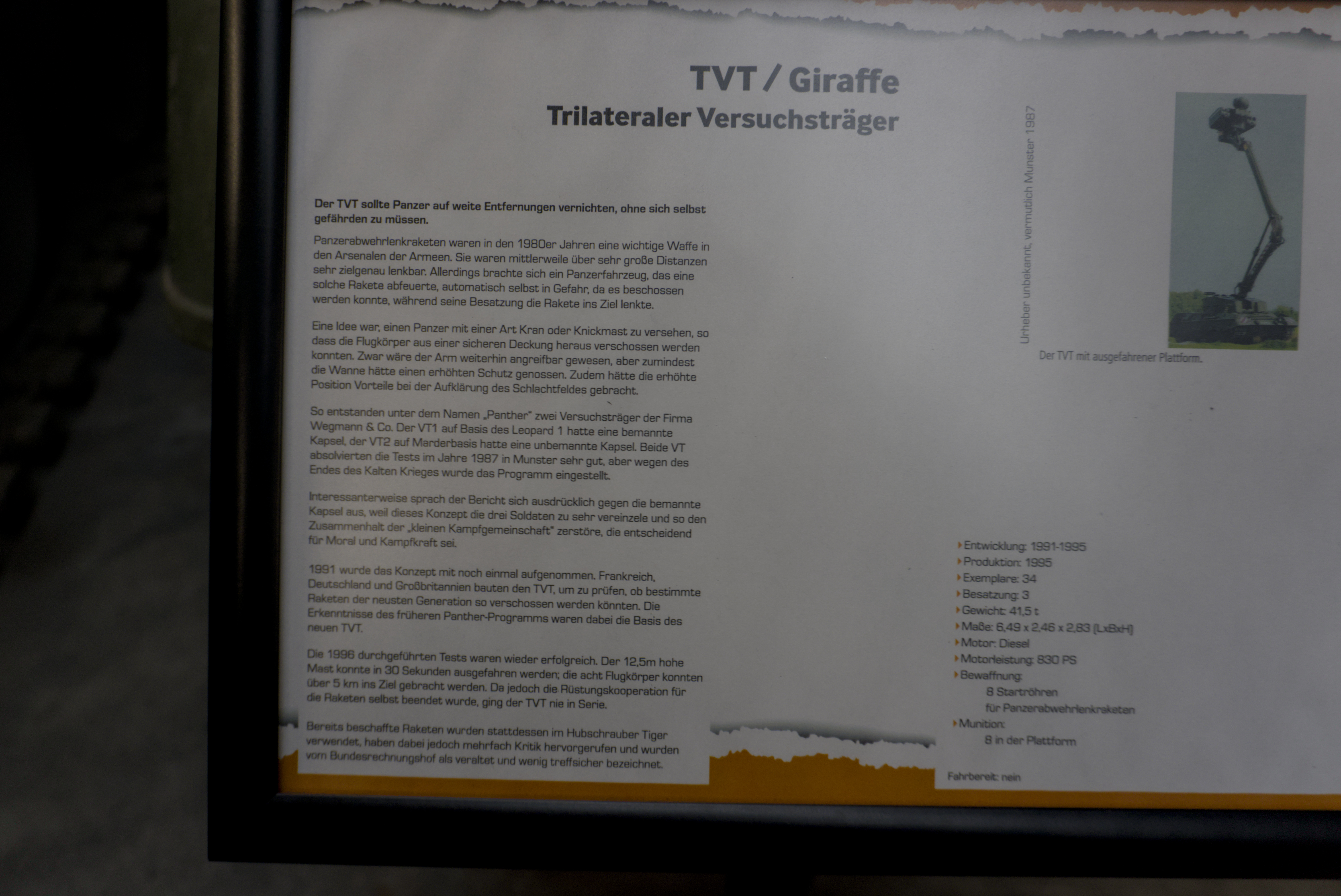 Bezug auf Panzerfahrzeuge in einer Daueraustellung behandelt. Von den