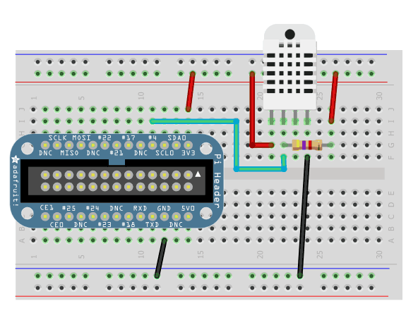 It is easy to set up and can be read through the adafruit DHT python library based on which I have written a simple script. The Pi 4 also runs a mongo database which stores the humidity, temperature and date. A new document is inserted every 5 minutes. Plans for the future include an express.js-based API for accessing this data and filtering for maximum and minimum temperature/humidity.