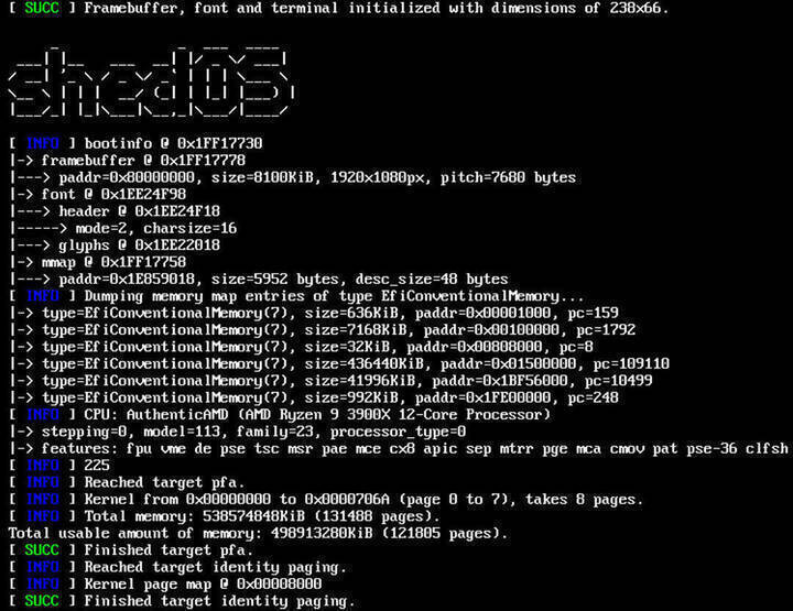 The OS is written in C as it is the lingua franca of low level system programming. It basically translates one to one to assembly and has minimal dependencies so it allows for easy development of freestanding applications using options and custom toolchains. We basically create a freestanding 64-bit position-independent elf executable containing all the kernel code, linked at the higher half. This will then be copied to a partition containing an echfs file system on a .hdd file where we will also install limine, the bootloader. Limine directly puts the kernel at the higher half, sets up long mode, necessary paging and jumps to the entry point. This disk image can be attached to your virtual machine of choice (I use QEMU) and limine will boot the kernel.